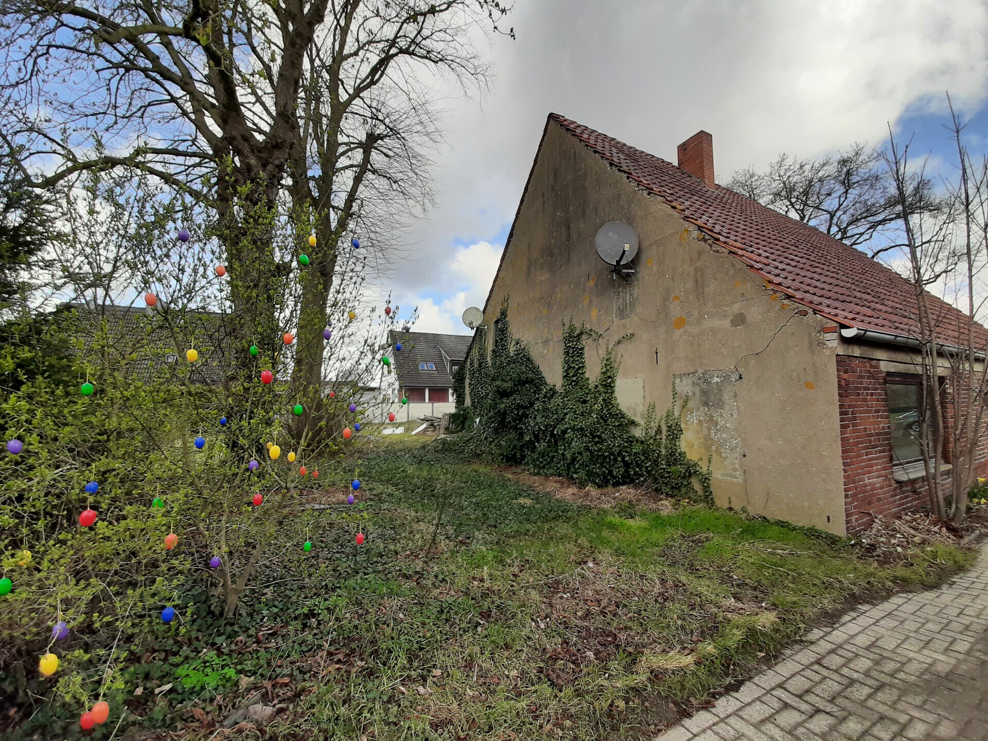 Die kleine Resthofstelle mit Ackerland hat eine Gesamtgröße von 14.510 m². Der Hof ist teilweise gepflastert. Der Garten hinter dem Haus hat die Ausrichtung nach Südwesten und ist in Rasenfläche angelegt. Zusätzlich stehen auf dem Grundstück eine Kastanie und eine Linde. Eine Tierhaltung ist möglich. Auf Wunsch kann eine weitere angrenzende Ackerfläche zur Größe von 13.212 m² zusätzlich erworben werden. Beide Ackerflächen sind aktuell verpachtet.