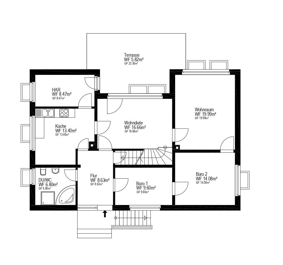 - Flur und Badezimmer im Erdgeschoss sind gefliest