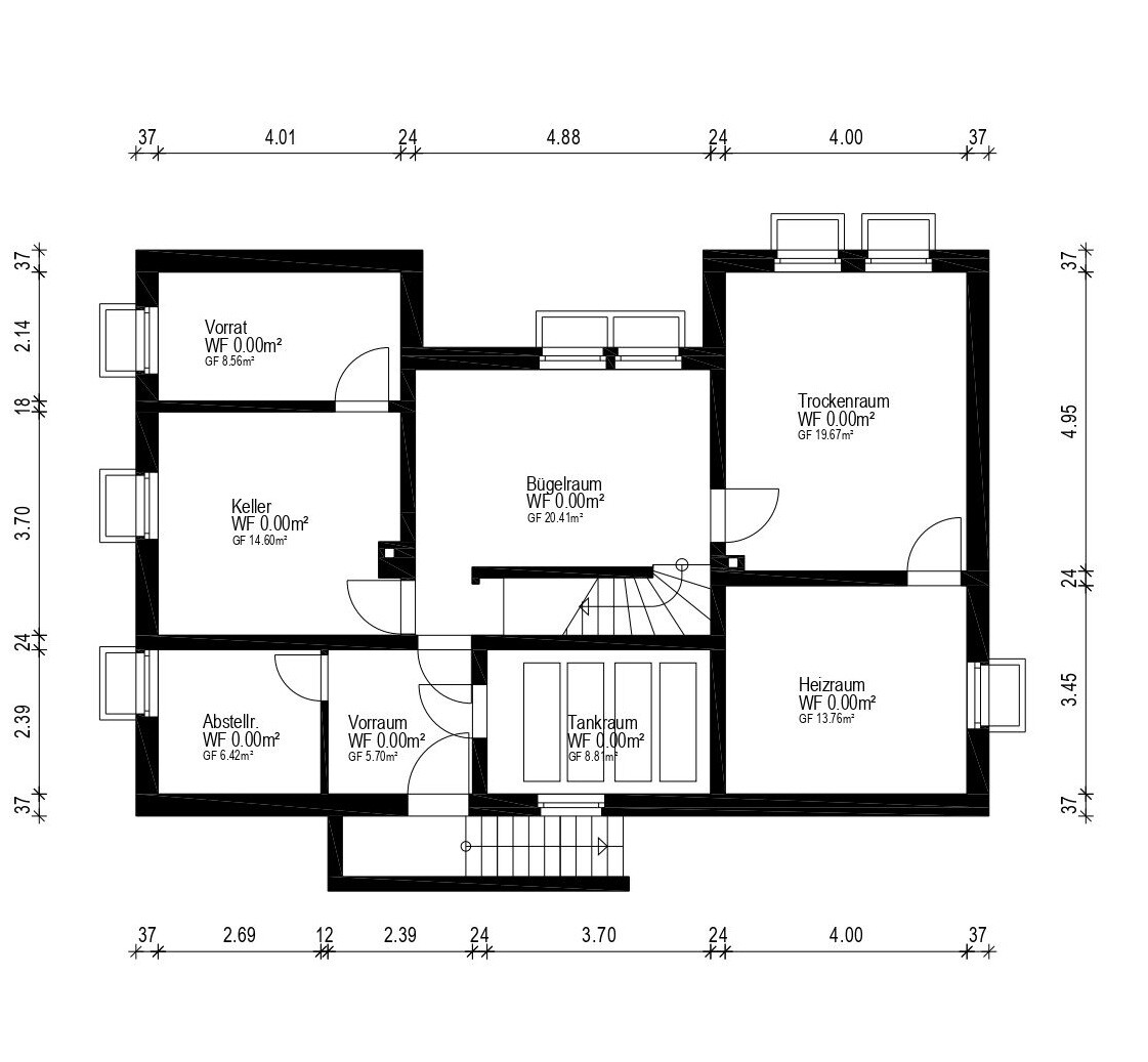 Das Wohnhaus wurde 1975 in Massivbauweise erbaut und erstreckt sich mit insgesamt ca. 201 m² großzügig über einen Vollkeller, das Erdgeschoss und ein Obergeschoss. Die Wohnfläche verteilt sich nahezu gleichmäßig auf ca.102 m³ im Erdgeschoss und 99 m³ im Obergeschoss. Das Dachgeschoss ist nicht ausbaufähig. Nach einem Brandschaden in der Küche im Erdgeschoss wurde im Erdgeschoss komplett neu gestrichen und alle Türen wurden erneuert. Die überwiegende Ausstattung stammt allerdings noch aus der Bauzeit.