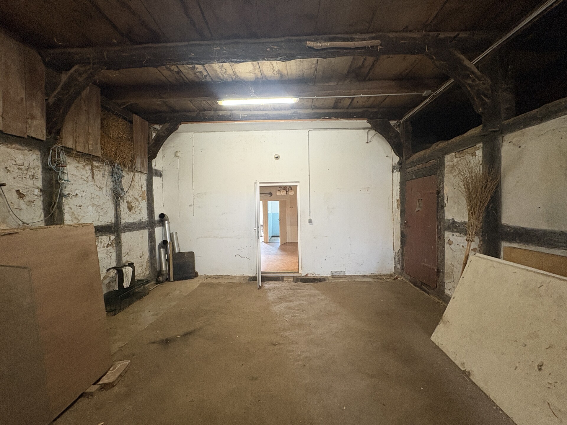 Als Nebengebäude sind ein massiver Stall mit ausgebauter Werkstatt und Garage sowie eine abgängige Holzscheune vorhanden. Der nördliche Giebel des Stallgebäudes bricht heraus und das Dach ist undicht.