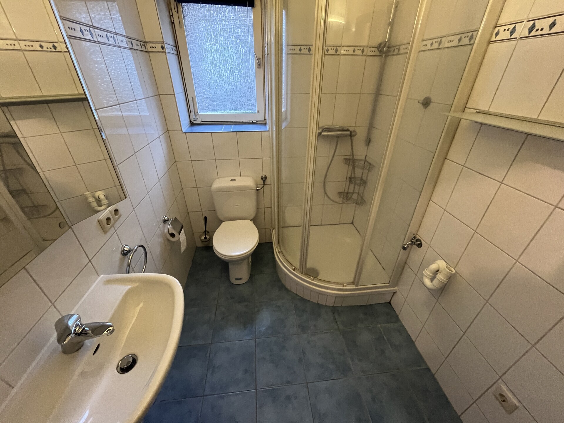 - Duschbad mit Boden- und Wandfliesen, Eckdusche u. Waschmaschinenanschluss