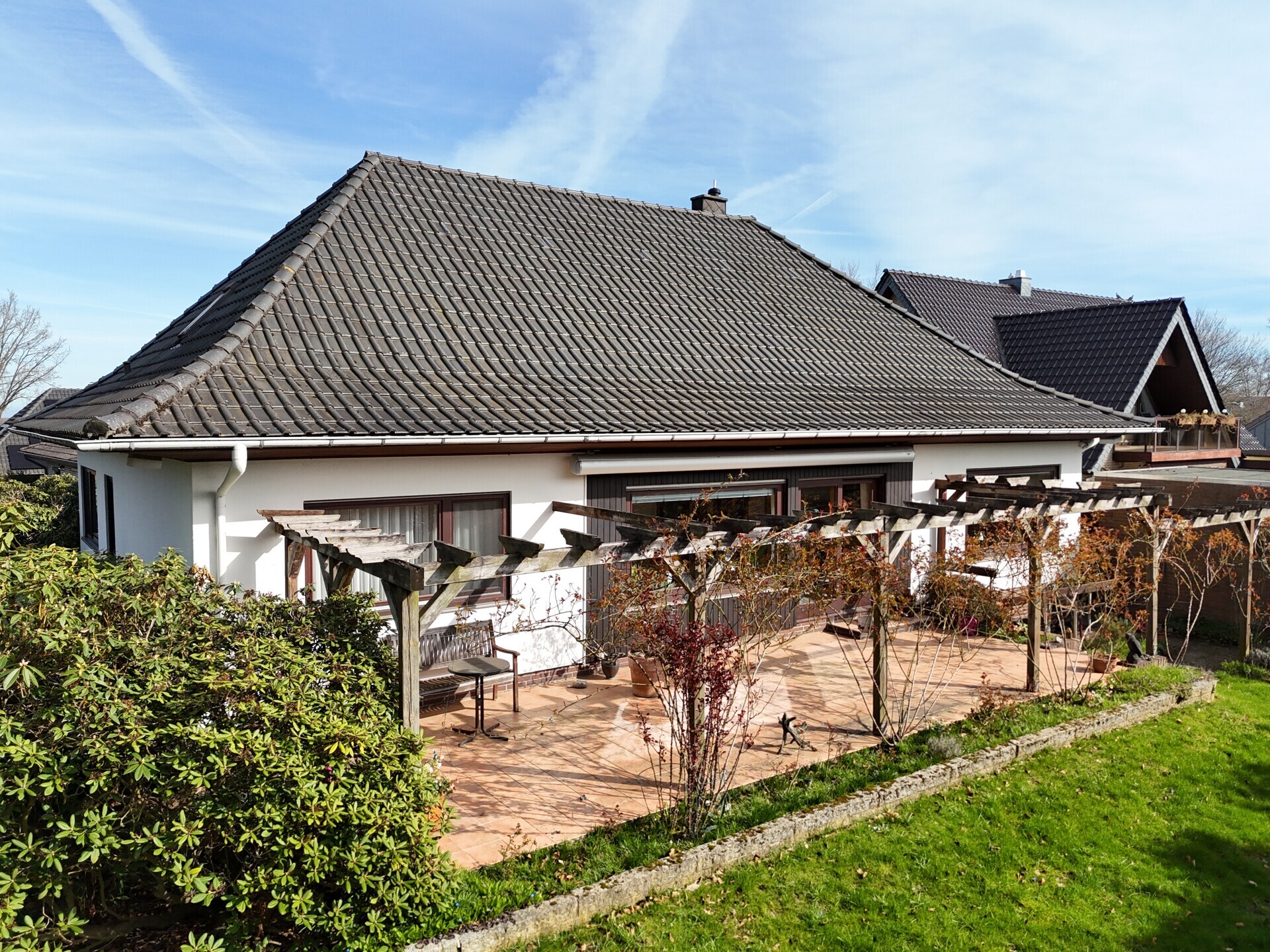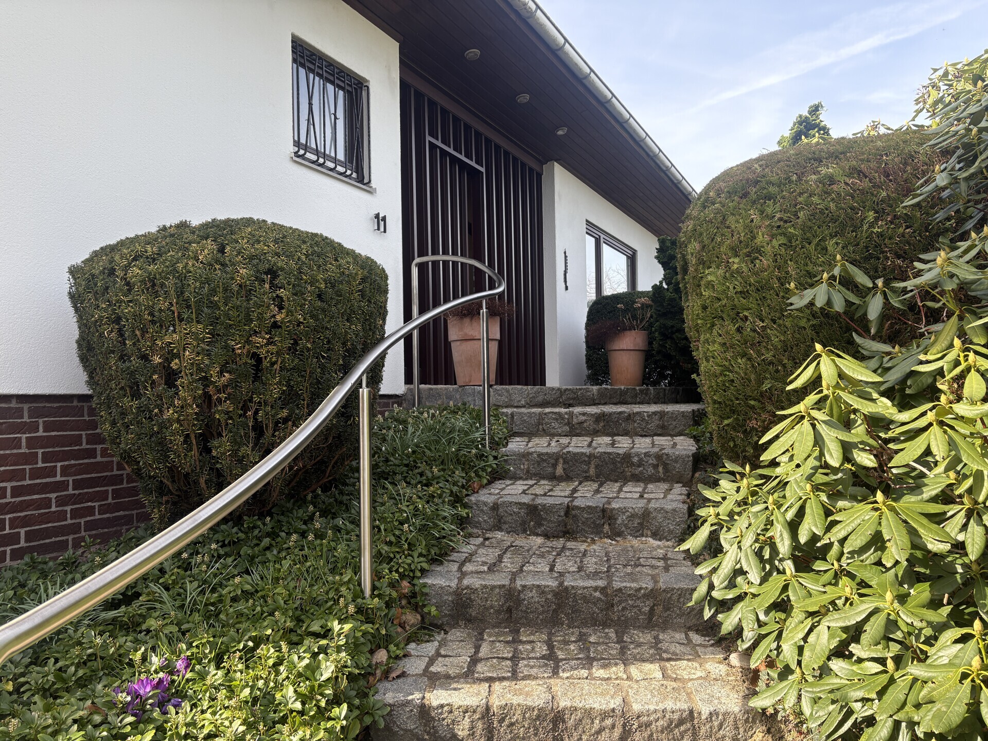 Ein wenig majestätisch liegt dieser top-gepflegte Bungalow auf einer Anhöhe, mit herrlichem weitem Blick. Er bietet ein komfortables Wohnen auf einer Ebene und ist ideal für eine entspannte Lebensphase. Die barrierearme Gestaltung ermöglicht ein sicheres und bequemes Zuhause. Dank des sehr guten Pflegezustands wäre der Bungalow sofort bezugsfertig, energetische Maßnahmen sind durch die überwiegende Ausstattung aus der Bauzeit jedoch sinnvoll. Der ruhige Wendehammer sorgt für eine angenehme, nahezu verkehrsfreie Wohnatmosphäre. Der Vollkeller eröffnet zusätzliche Flächen für Hobbys, Arbeiten oder Wellness – inklusive Sauna als besonderem Highlight. Abgerundet wird das Angebot durch den großzügigen Garten sowie eine große Garage - ideal für Paare, die komfortables Wohnen mit Ruhe und Privatsphäre verbinden möchten.