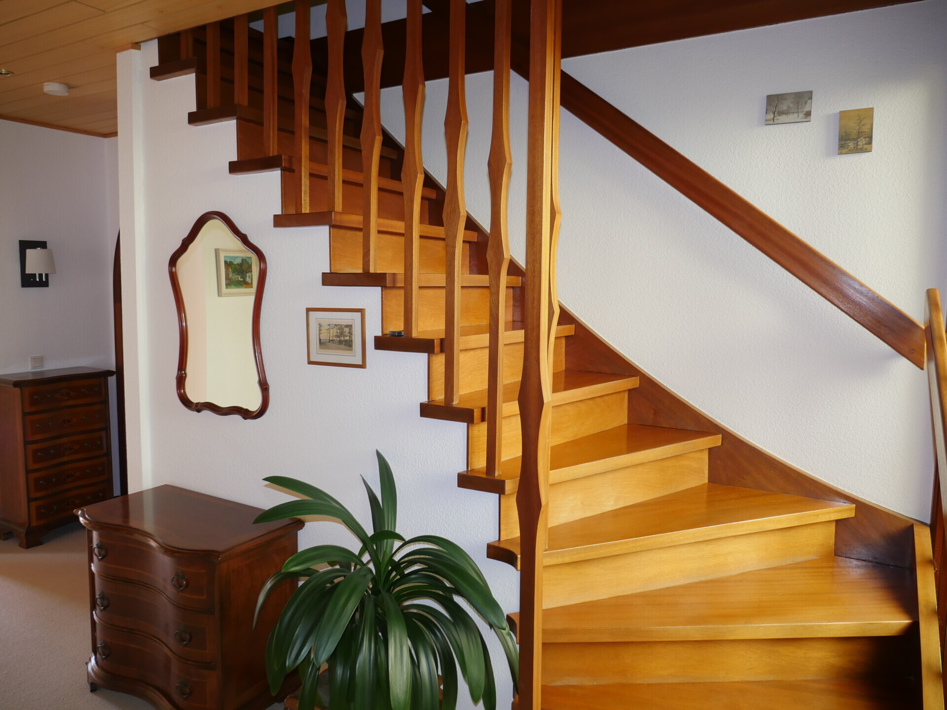 Im Bereich neben der Kellertreppe sind leichte Feuchtigkeitserscheinungen sichtbar. Die Rollläden sind schwer zu bedienen.