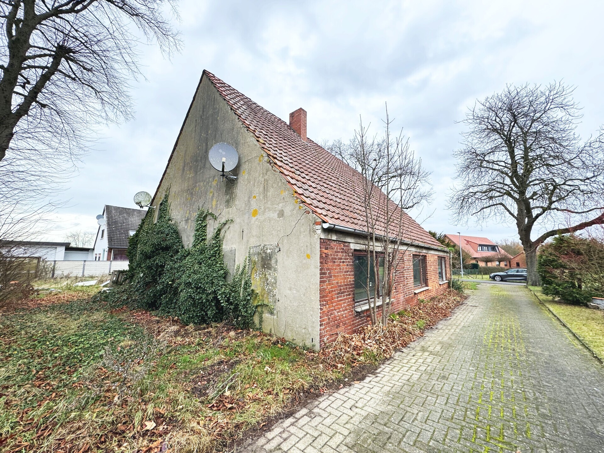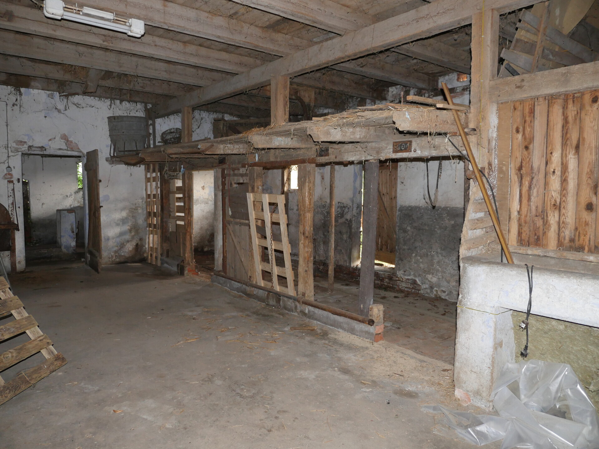Der vorhandene Gebäudebestand ist stark sanierungsbedürftig: Die Ausstattung des ehem. Bauernhauses ist sehr einfach (Fenster, Fußböden, Badezimmer, keine Heizung). In einigen Bereichen ist aufsteigende Feuchtigkeit sichtbar. Im angrenzenden Stallgebäude befinden sind ehemalige Kuh- und Schweineställe. Im hinteren Bereich war früher eine Metallwerkstatt. Beide Dachböden wurden zur Heu- und Strohlagerung genutzt. Bebaubarkeit: Sollte der Gebäudebestand abgebrochen werden, wäre im Zuge einer Lückenbebauung im Sinne von § 35 (2) BauGB die Errichtung eines für das Orts- und Landschaftsbild typischen Wohnhauses mit bis zu zwei Wohneinheiten möglich. Hierbei wäre es auch denkbar, zwei Häuser etwas versetzt, aber dennoch miteinander verbunden zu bauen. Eine Trennung des Grundstückes wäre dafür nicht möglich, ggf. aber eine Teilung nach dem Wohnungseigentumsgesetz. Da es hier früher eine landwirtschaftliche Nutzung gab, könnte ggf. auch eine Nutzungsänderung bis zu fünf Wohneinheiten im bestehenden Bestand genehmigt werden. Für Ihre individuellen Bauwünsche sollte unbedingt eine Bauvoranfrage nach § 73 NBauO gestellt werden, die Ansprechpartner nennen wir Ihnen gern. Es liegt ein Kostenvoranschlag für die Abbrucharbeiten aller Gebäude vor; diesen stellen wir Ihnen gerne zur Verfügung. Haustechnik: Elektrizität, öffentliches Wasser, Kanal. An der vorderen rechten Grundstücksgrenze steht ein Transformatorenhäuschen, dafür ist eine Grunddienstbarkeit eingetragen. Eine Wohngebäudeversicherung gibt es aktuell nicht. Übergabe: Haus und Scheune sind bereits geräumt und können nach Vorlage aller Genehmigungen übergeben werden.