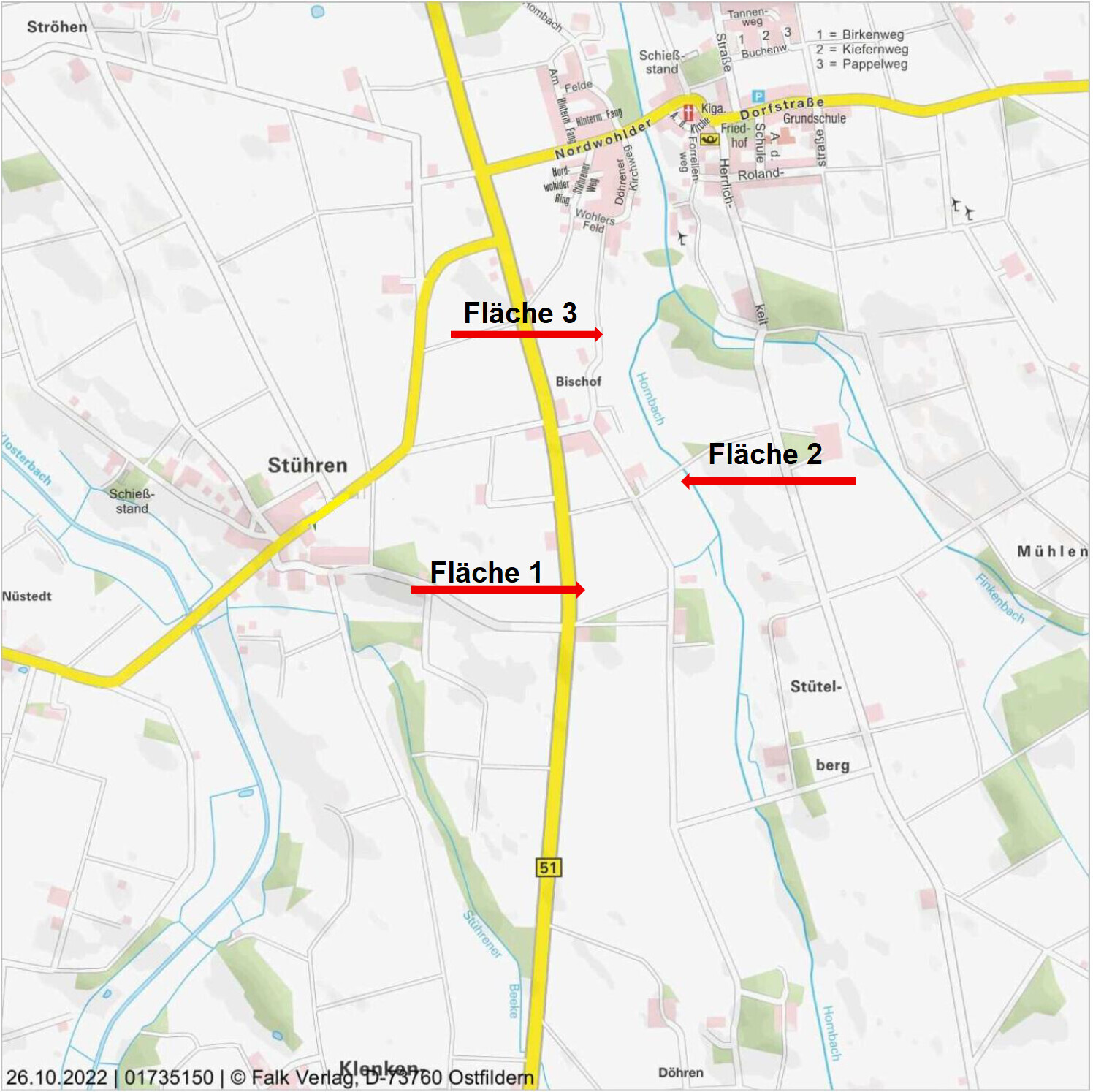 Im Alleinauftrag verkaufen wir in der Gemarkung Stühren: Fläche 1: 1.37.93 ha Ackerland Gemarkung Stühren Flur 5 Flurstücke 44/1 und 44/2 Lage: „Neue Kämpe“. Die Bonitierung liegt bei 33/31 Bodenpunkten. Fläche 2: 0.94.54 ha Grünland Gemarkung Stühren Flur 5 Flurstück 71/1, Lage: "Alte Kämpe". Die Bonitierung liegt bei 42 Bodenpunkten. Die Fläche liegt im Landschaftsschutzgebiet LSG-DH 60 "Hombach-Finkenstedt-Klosterbach". Fläche 3: 0.56.09 ha Grünland inkl. Gehölz und Bach Gemarkung Stühren Flur 5 Flurstück 15/1, Lage: "Wohlers Feld". Die Bonitierung liegt bei 41 Bodenpunkten. Die Fläche liegt im Landschafts- schutzgebiet LSG-DH 60 "Hombach-Finkenstedt-Klosterbach" und hat die Gewässer II Ordnung. Die Flächen sind aktuell verpachtet und können am 01.10.2026 pachtfrei übergeben werden. Die genaue Lage entnehmen Sie bitte der Skizze.