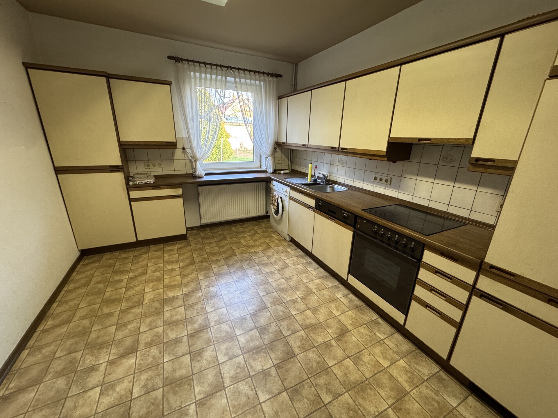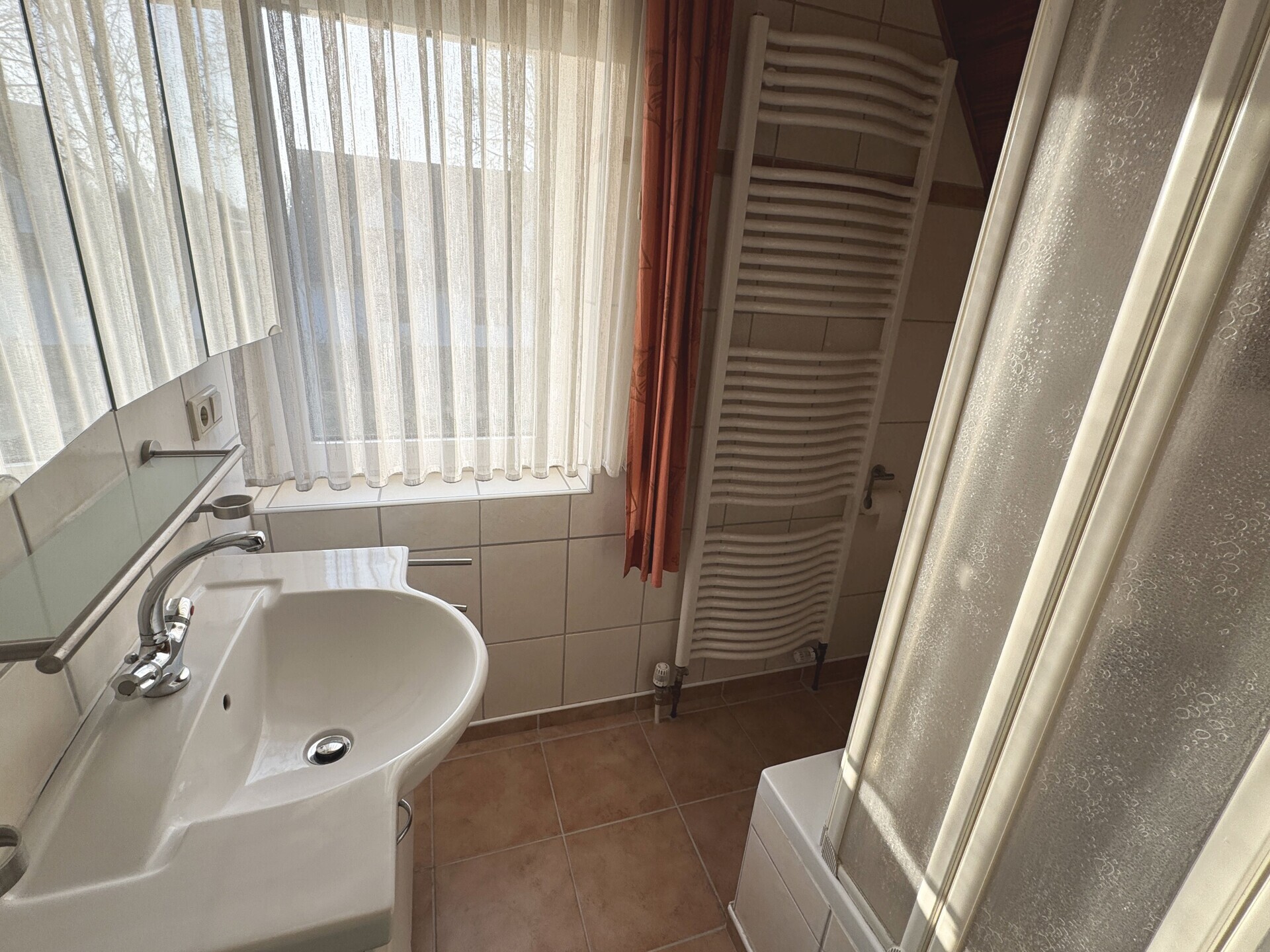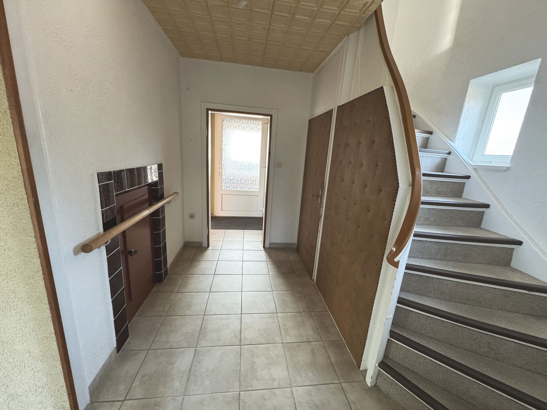Das Wohnhaus wurde 1956 gebaut und stetig instand gehalten. Es ist etwa zu 3/4 unterkellert. Im Jahr 1975 wurde der Eingangsbereich durch einen kleinen Vorbau erweitert, der erneuerungsbedürftig ist. Das Dach wurde in den 90er-Jahren neu eingedeckt und mit Holz verschalt. Im November 2011 wurde eine Photovoltaikanlage mit einer Leistung von 3,68 kWp installiert. - isolierverglaste Kunststofffenster von 1979 bis 1995 mit Außenrollläden - Flur und Gäste-WC wurden im Jahr 2006 neu verfliest - Küche hat PVC-Boden - Esszimmer ist mit Teppichboden ausgelegt - großzügiges Wohnzimmer mit Kachelofen und Ausgang auf die Terrasse - Holztreppe führt ins Dachgeschoss - neues Bad von 2006 mit Duschwanne, WC, Waschbecken und Handtuchheizung - ehemalige Kinderzimmer sind mit Teppichboden ausgelegt - großzügiges Elternschlafzimmer mit Zugang auf den Balkon - im Bereich des Fensters, das auf den Balkon führt, sind leichte Risse in der Decke sichtbar - Balkonfliesen sind erneuerungsbedürftig - bei Starkregen kann Wasser in den Keller eintreten, es sind leichte Farbabplatzungen sichtbar - im Keller befinden sich noch die alten Öltanks der früheren Ölheizung Haustechnik: Gaszentralheizung von 2016, Elektrizität, öffentliches Wasser, Kanalisation. Der Kachelofen ist nach aktuellem Kenntnisstand nicht nutzbar, da die Brennwerttherme an den Schornstein angeschlossen ist. Übergabe: Das Hausgrundstück kann kurzfristig nach einem notariellen Kaufvertrag übergeben werden.