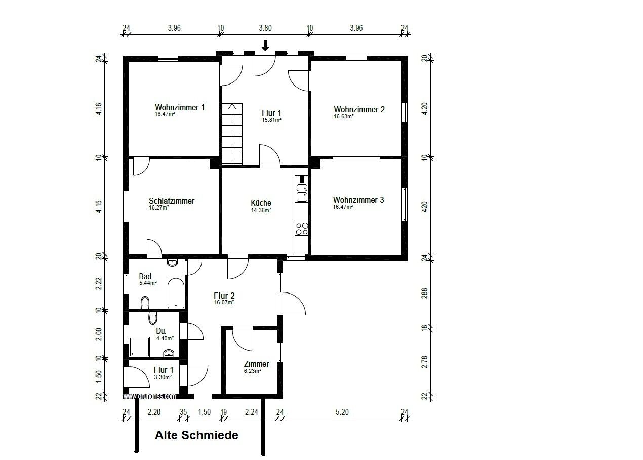 Das im Jahr 1925 erbaute Wohnhaus überzeugt durch seinen soliden Bestand, einen durchdachten Grundriss sowie vielseitige Ausbau- und Nutzungsmöglichkeiten. Die Immobilie erstreckt sich über drei Kellerräume, ein Erdgeschoss, ein überwiegend ausgebautes Dachgeschoss sowie einen Zwischenbau, der zur Werkstatt führt, die einst als Schmiede genutzt wurde. Diese bildet heute eine ideale Grundlage für handwerkliche Tätigkeiten oder kreative Projekte. Zwischen 1978 und 1982 wurden umfassende Umbaumaßnahmen durchgeführt. In diesem Zuge wurden unter anderem die Schmiede umgebaut, neue Fenster eingebaut und die Fassade verklinkert. Das Badezimmer wurde in den 1980er Jahren erneuert. In den Jahren 1990 und 2004 erfolgte eine Dachsanierung, wodurch die Bausubstanz weiter aufgewertet wurde. - Flur und Küche mit Holzböden und PVC-Belag - die alten Türen wurden überarbeitet aber erhalten - isolierverglaste Holzfenster im Wohnbereich. Bei älteren Gebäuden empfehlen wir grundsätzlich die Überprüfung des Dachstuhls durch eine Fachfirma. Haustechnik: Ölheizung mit Warmwasser aus 2001, Druckrohrentwässerung, Elektrizität, öffentliches Wasser. Der Antrag für einen Anschluss an das Glasfasernetz ist gestellt. Empfohlene Modernisierungsmaßnahmen lt. Energieausweis: Dämmung (Wände, Rohrleitungssystem, Kellerdecke, Dach) und Austausch der Fenster. Übergabe: Das Hausgrundstück kann kurzfristig nach Abschluss eines notariellen Kaufvertrages übergeben werden. Bebaubarkeit: Nach Auskunft des Fleckens Bruchhausen-Vilsen liegt das Grundstück im Außenbereich, eine weitere Bebauung ist voraussichtlich nicht möglich. Flurbereinigung: Das Grundstück liegt im Flurbereinigungsverfahren Haendorf-Essen. Die vereinfachte Flurbereinigung wurde mit Beschluss vom 09.08.2019 angeordnet und die Schlussfeststellung soll 2034 erfolgen.