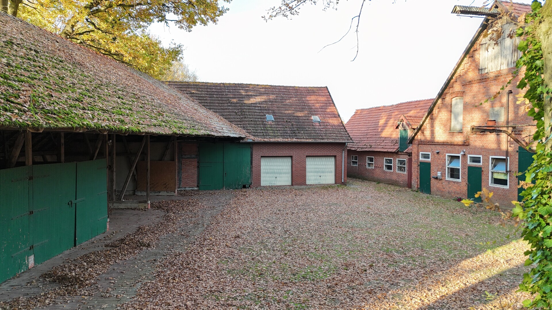 Lage Grundstück: Das großzügige Hofgrundstück liegt im Ortskern von Schwaförden und bietet mit 9.359 m² vielseitige Nutzungsmöglichkeiten. Als Nebengebäude dienen eine große Wagenremise, eine Doppelgarage, eine große Scheune sowie der ehemalige Schweinestall mit Pferdeboxen. Die Dächer der Nebengebäude weisen zum Teil Undichtigkeiten auf. Die Dachkonstruktion über dem Stallgebäude ist in einem sehr schlechten Zustand. Schwaförden ist Teil der gleichnamigen Samtgemeinde mit rund 6.730 Einwohnern. Der Resthof liegt im Ortskern, d.h. mit der Nahversorgung durch einen Edeka-Markt, Hausarztpraxis, Bankfiliale, der Oberschule mit Turnhalle sowie der Kirche befinden sich alle wichtigen Stätten des täglichen Bedarfs in unmittelbarer Nachbarschaft. Auch der Kindergarten ist mit dem Fahrrad bequem zu erreichen. Lage Schwaförden: Schwaförden verfügt über eine gut entwickelte Infrastruktur. Die Bushaltestelle der Schulbuslinien liegt direkt vor der Tür und bringt die Schulkinder zur Grundschule Sudwalde oder dem Gymnasium in Sulingen. Die Linie 123 ist in ca. 2 km zu erreichen und verbindet Sulingen und Bassum. D.h. auch für Pendler ist die Verkehrsanbindung gut ausgebaut. In Bassum befindet sich ein Bahnhof mit Anschluss an das regionale Schienennetz nach Bremen bzw. Osnabrück. Die umgebende Landschaft mit ausgedehnten Wald- und Moorgebieten bietet einen hohen Freizeitwert – zum Reiten, Radfahren, Wandern oder für andere Aktivitäten in der Natur.