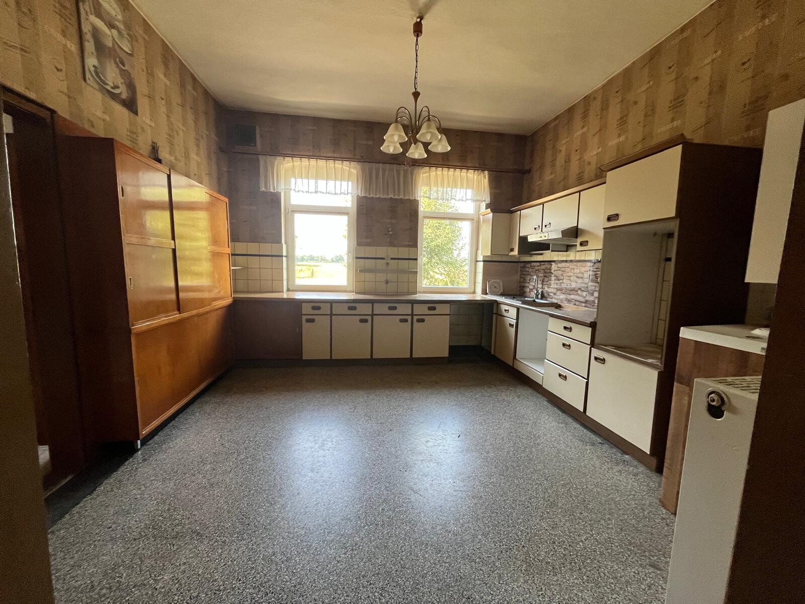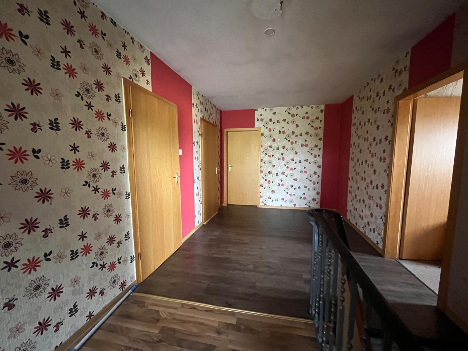 Das um 1900 errichtete ehemalige Bauernhaus besticht durch seinen großzügigen Grundriss mit ca. 318 m² Wohnfläche, verteilt auf insgesamt 9 Zimmer. Die Immobilie bietet vielfältige Nutzungsmöglichkeiten und eignet sich ideal für Familien mit Platzbedarf und zur Tierhaltung – insbesondere für Pferde. In den vergangenen Jahren wurden bereits einzelne Modernisierungsmaßnahmen durchgeführt: So wurde im Jahr 2013 die Gaszentralheizung erneuert. Zudem sind teilweise Fenster sowie Bodenbeläge ausgetauscht worden. Die übrige Ausstattung befindet sich größtenteils im Zustand der Bauzeit bzw. stammt aus den 1960er Jahren. Entsprechend besteht ein umfassender Sanierungsbedarf, der jedoch viel Potenzial für individuelle Gestaltung und die Wiederherstellung des historischen Charmes bietet. - Gut erhaltene Stilelemente: Original-Terrazzoboden in der Küche, Fliesen im Flur, historische Füllungstüren - Bodenbeläge: Vinyl, Laminat, Fliesen, Parkett sowie Holzdielen - Fenster: Isolierverglaste Kunststofffenster (Einbau 2014) - Badezimmer EG: Ausstattungsstand ca. 1960er Jahre mit Badewanne, WC und Waschbecken - Badezimmer DG: Duschwanne, WC und Waschbecken - Teilkeller: Nutzbar, jedoch besteht ein Feuchtigkeitsproblem. Bei älteren Gebäuden empfehlen wir grundsätzlich die Überprüfung des Daches durch eine Fachfirma. Ein Gutachten aus 07/2024 liegt dazu bereits vor. Auf Wunsch stellen wir Ihnen dieses gern zur Verfügung. Haustechnik: Gaszentralheizung von 2013, Elektrizität, öffentliches Wasser. Übergabe: Das Hausgrundstück kann kurzfristig nach einem notariellen Kaufvertrag übergeben werden.