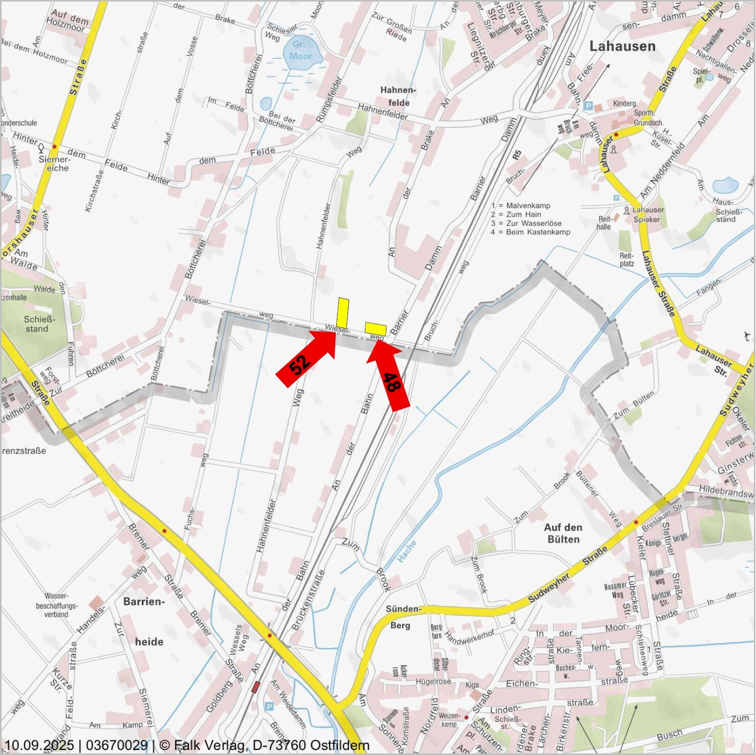 Im Alleinauftrag verkaufen wir in der Gemarkung Kirchweyhe 1.27.67 ha Ackerland in zwei nahe beieinanderliegenden Flächen. 7.206 m² Ackerland Flur 22 Flurstück 52, Lage: „Hahnenfelde“, BWZ 38 und 5.561 m² Ackerland Flur 22 Flurstück 48, Lage: "Hahnenfelde", BWZ 36. Im Süden grenzen die Flächen an den "Wieselweg", sie liegen im Wasserschutzgebiet. Am 01.10.2026 können sie pachtfrei übergeben werden. Die genaue Lage entnehmen Sie bitte der Skizze.